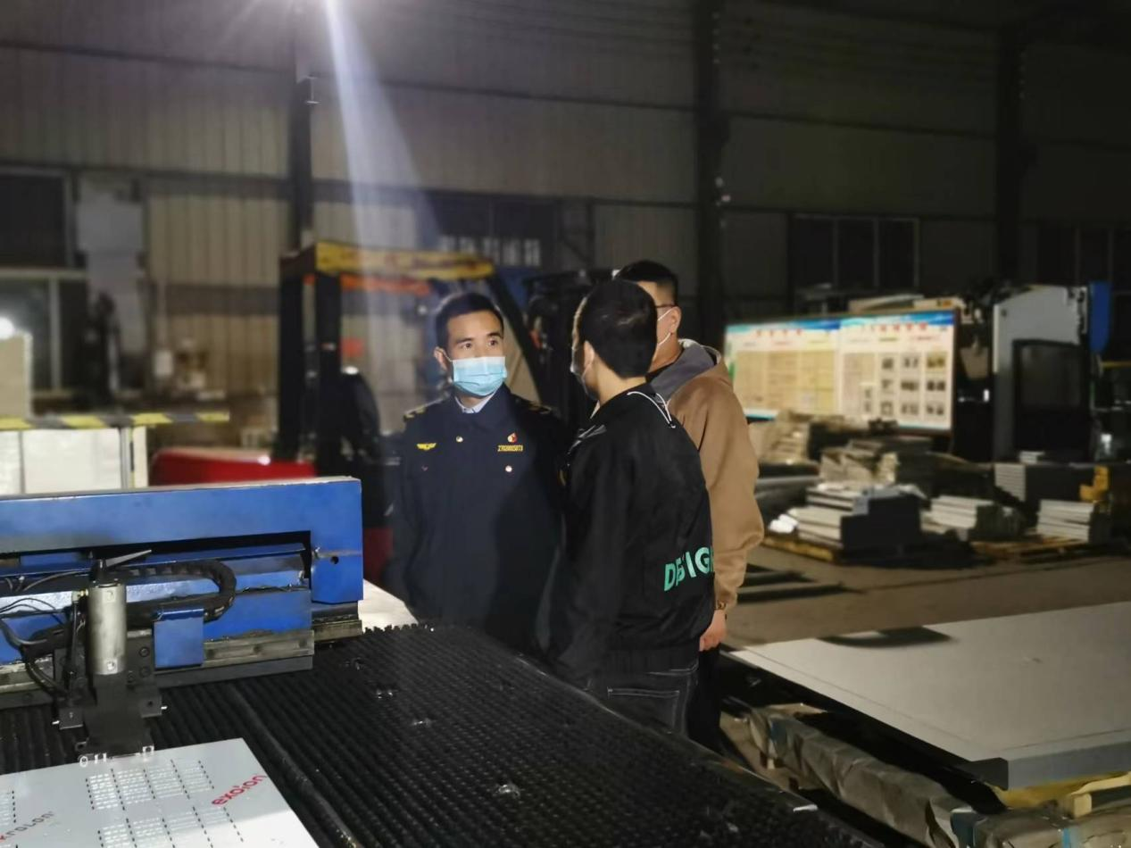 10月24日下午至25日清晨,五大队执法人员不惧冷空气,全员出动,直奔出产车间,对夜间限产管控企业执行状况展开执法查看和突击夜查。执法人员要点查看了深井机械锻压铸造、有色金属压延等要点职业范畴企业的出产设备正常运转状况、污染环保设备运作状况、环保设备运转台账记载、夜间噪声排放等作业,对存在的环境危险严厉催促企业整改,继续压紧压实企业污染管控职责,保证公司制造经营活动合格运转。