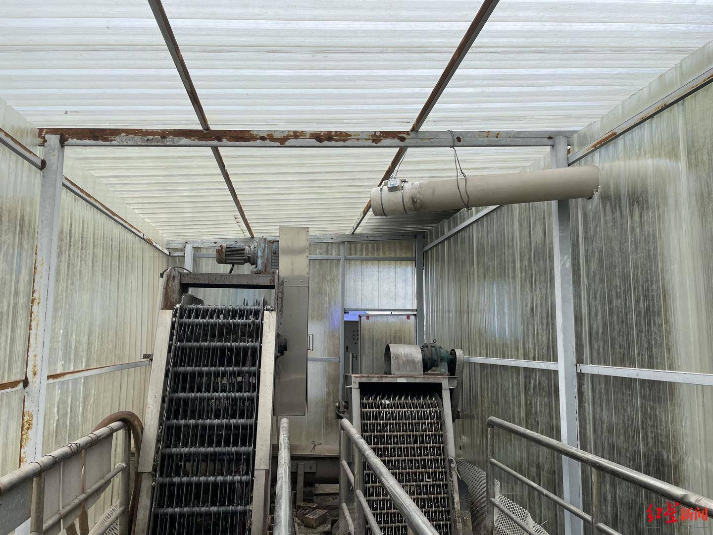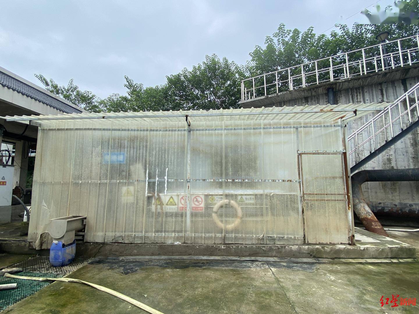 处理站内一处用透明塑料棚罩起来的区域便是“格栅渠”。“格栅渠主要对污水进行粗过滤,考虑到臭味问题,对这一道工序进行密闭,并加装臭气处理装置,处理后再进行排放。”该站负责这个的人说,已逐步加强除臭装置运行管理及站区清洁卫生管理,加大污泥清运频率及除臭、消毒药剂喷洒频率,争取不让周边散步健身的居民受影响。
